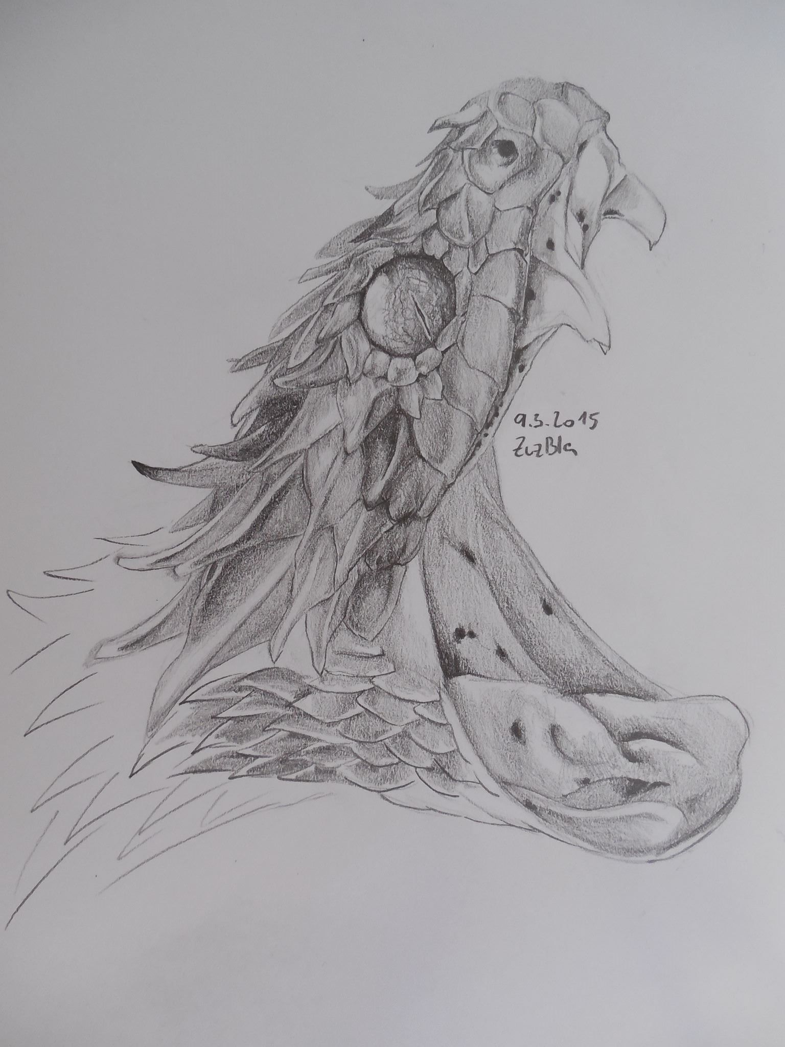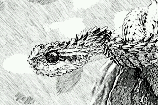 Start out by lightly sketching the basic shape of the snakes head and body.